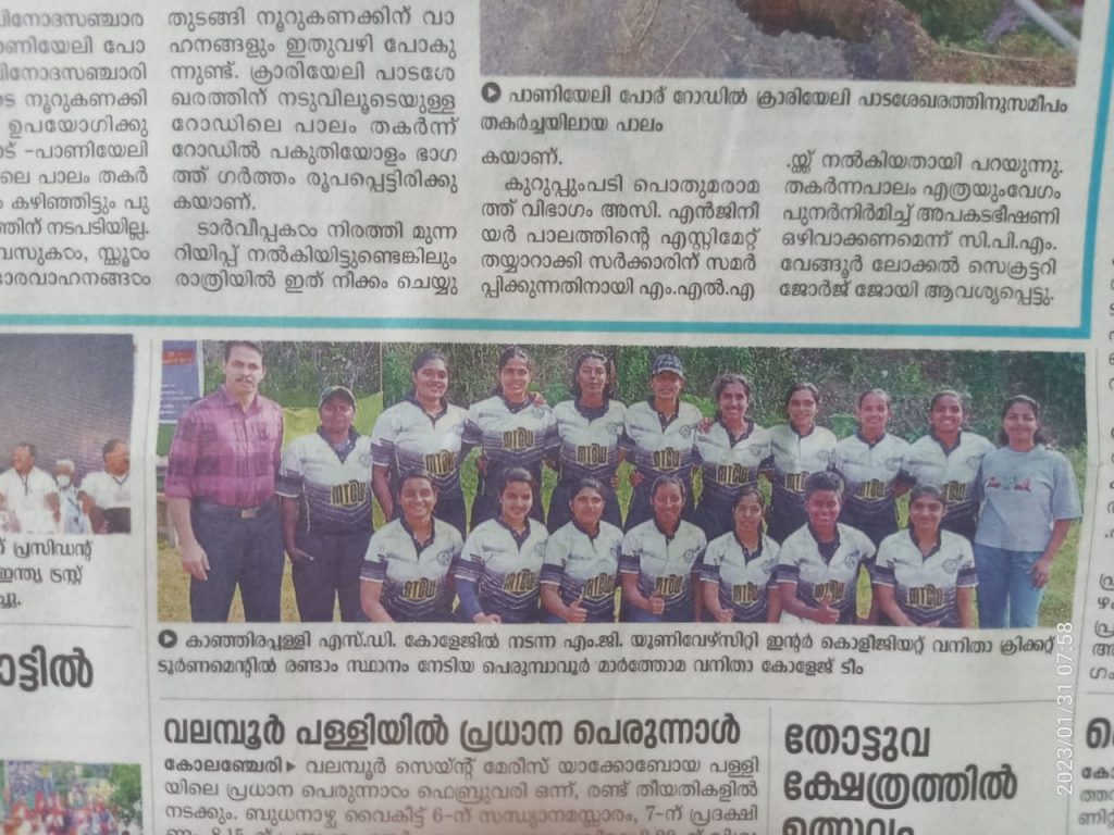 - Namitha K R, Athulya P, Aparna Kishore and Rejitha K L were selected to MG University Cricket Team 2024-2025.